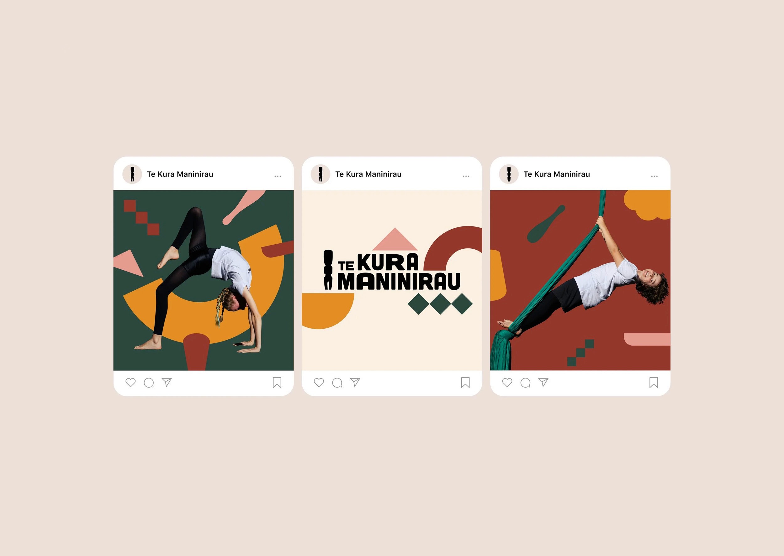 Te Kura Maninirau is Aotearoa’s (New Zealand’s) first kaupapa (values-based) Māori circus school, developed by Te Pou Theatre and Dust Palace. The programme creates new learning pathways for tamariki Māori (Māori children) into the circus art form, grounded in culture, movement and joy. They partnered with us to develop a visual identity that expressed their kaupapa (guiding principles) in a contemporary, playful way, one that resonated with tamariki (children) while reflecting the physicality and energy of circus. The identity needed to feel bold and joyful, without relying on familiar circus clichés. Moving away from traditional primary circus colours, the palette was inspired by the whenua (land). Drawing on the long whakapapa (lineage) of Māori arts, we built a flexible visual system rooted in form, rhythm and movement, supported by a suite of modular shapes. The identity was designed to be easily used and evolved by the client across their own communications, retaining mana (integrity) while allowing space for expression that is playful, powerful and unmistakably on-brand.