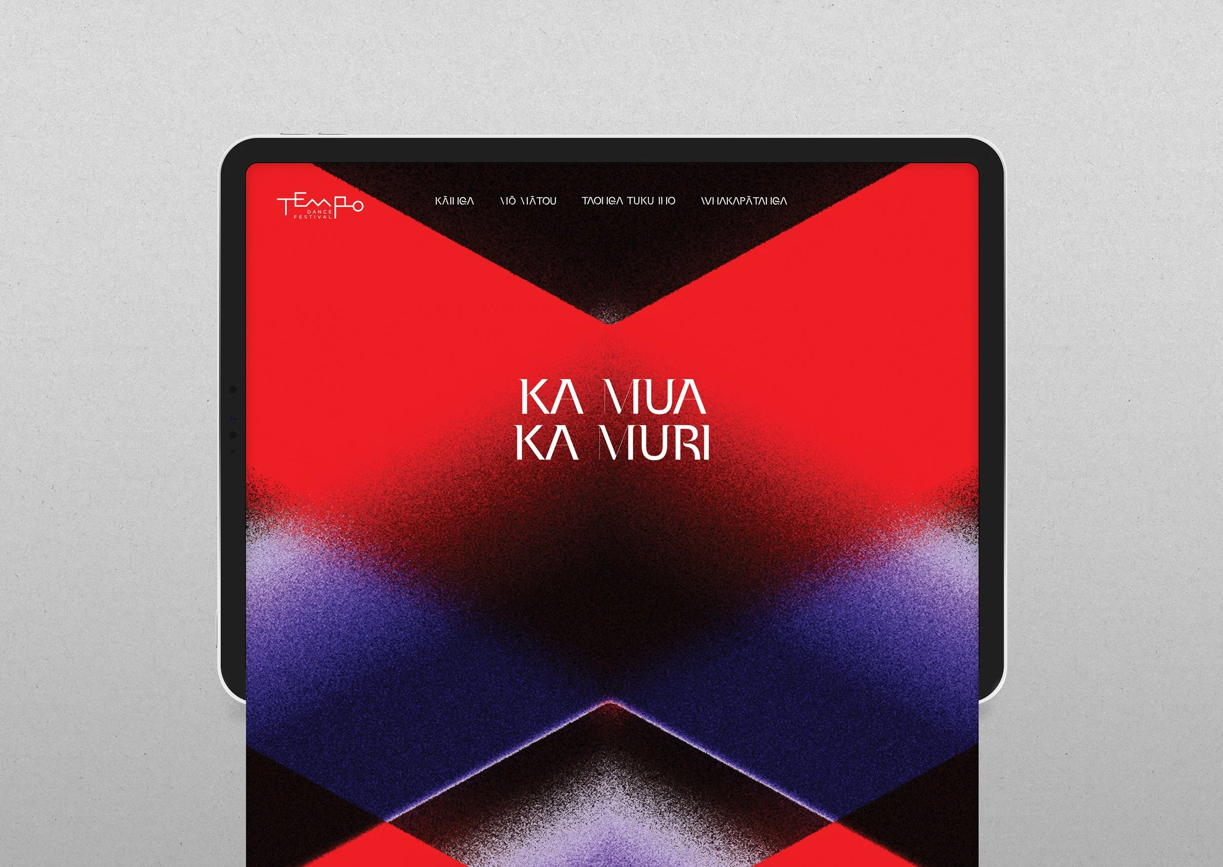 Tempo Dance Festival is one of Aotearoa’s (New Zealand's) longest-running annual dance events. This year, the proverb ka mua, ka muri (walking backwards into the future) was adopted as the guiding idea to celebrate the past as the foundation for moving confidently and innovatively forward. This philosophy became the central inspiration for the visual identity. A bespoke graphic symbol was developed to express movement, direction and the relationship between past and future. We drew on taki rua, a weaving structure commonly described as “two up, two down,” where rows move in alternating, opposing directions. While rooted in Māori visual language, the form also reads intuitively to Western audiences as an arrow. This graphic identity applied across promotional materials, digital platforms, and festival collateral, capturing the energy and movement inherent to dance while elevating the Festival’s profile in a competitive cultural landscape.