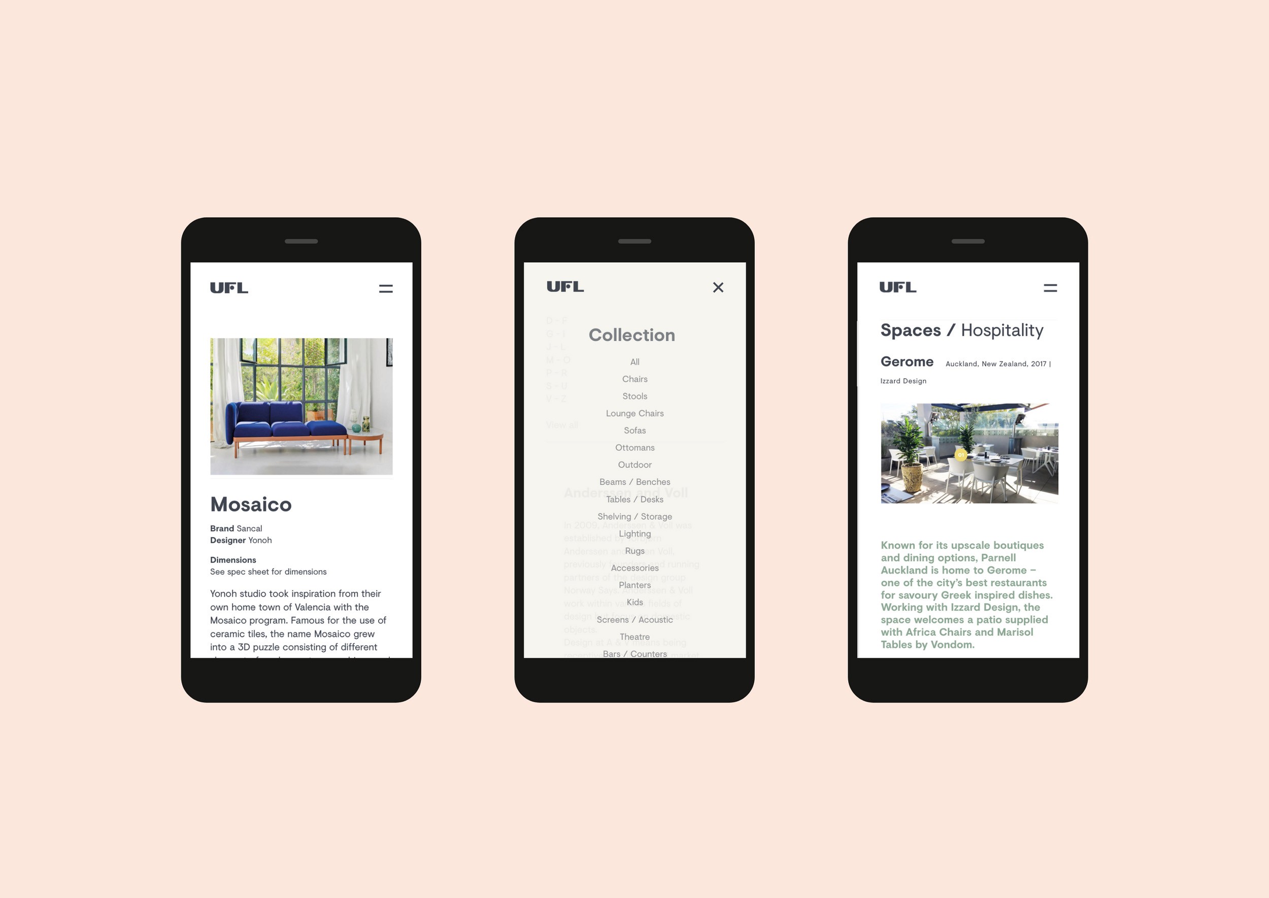 UFL was once a leader in furniture design, setting the standard for innovation in the category. Over time, however, competitors began to imitate its success, and the market became crowded with brands that looked and sounded increasingly alike. UFL challenged us to refresh the brand - amplifying its core qualities of quality, modernity and playfulness, while preserving the values that made it number one. The goal was to reclaim distinctiveness and ensure UFL once again stood confidently apart from the crowd. I worked across print assets and the website redesign, applying the new visual language, developing a modular graphic system and curating all on-site imagery. With a catalogue of over 600 products, every image needed to communicate premium quality and unique craftsmanship. Web development was delivered in collaboration with Garett Lockett, bringing the refreshed brand to life across the digital experience.